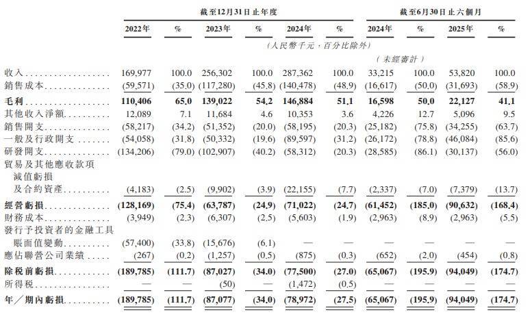 2022年至2024年及2025年上半年,公司营业收入分别达到1.70亿元、2.56亿元、2.87亿元和0.54亿元;期内净亏损分别为1.90亿元、0.87亿元、0.79亿元和0.94亿元。